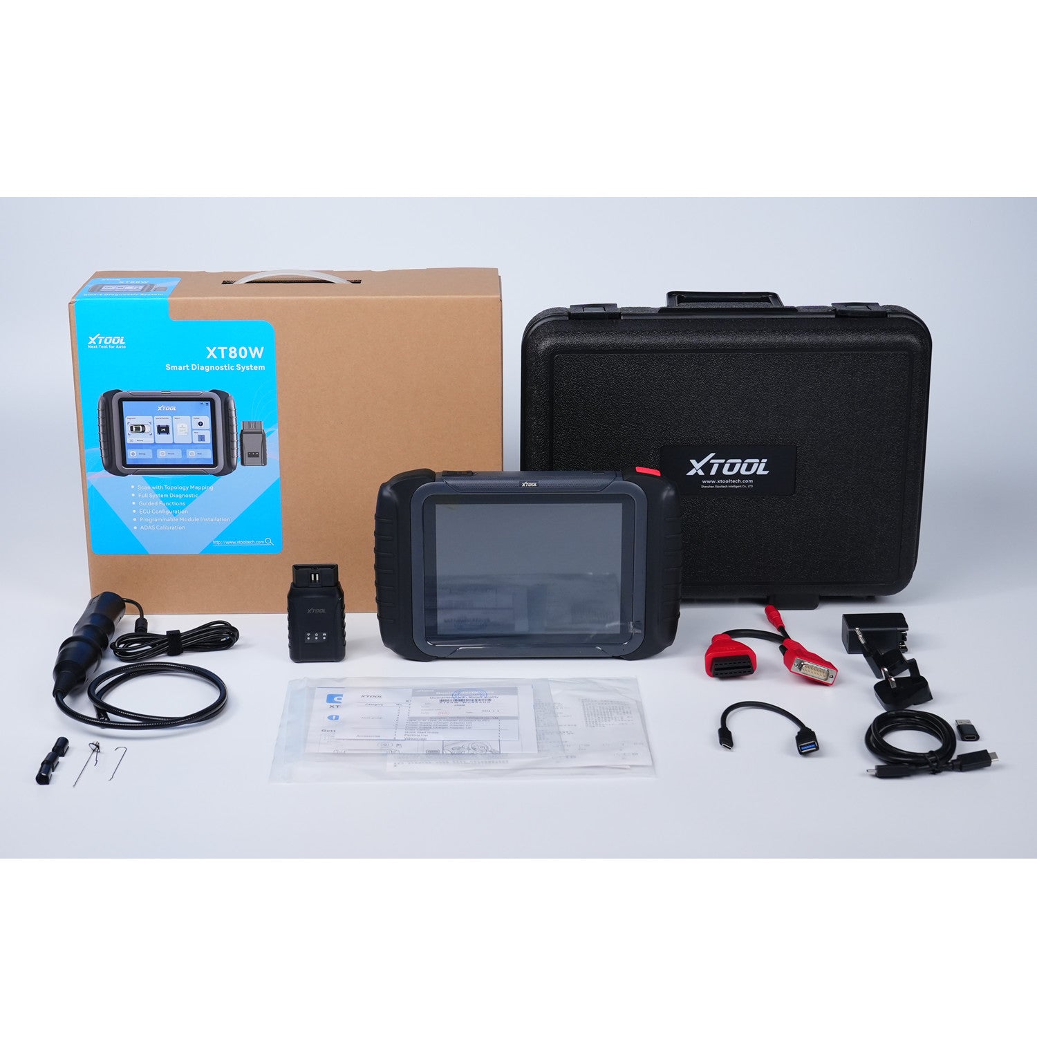 XT80W is an automotive smart diagnostic system with an 8-inch LCD display, which is designed for mechanics, electricians, and car maintenance shops. It supports full OBDII functions and full-system automotive diagnostics, including reading ECU version information, reading fault codes, live data, and freeze frames. 35+ common special functions are supported, such as throttle matching, ABS bleeding, maintenance light reset, EPB test, SAS calibration, BMS reset, injector coding, DPF regeneration, and TPMS reset. With 98% vehicle coverage, it works on more than 100 brands and 10,000 cars.